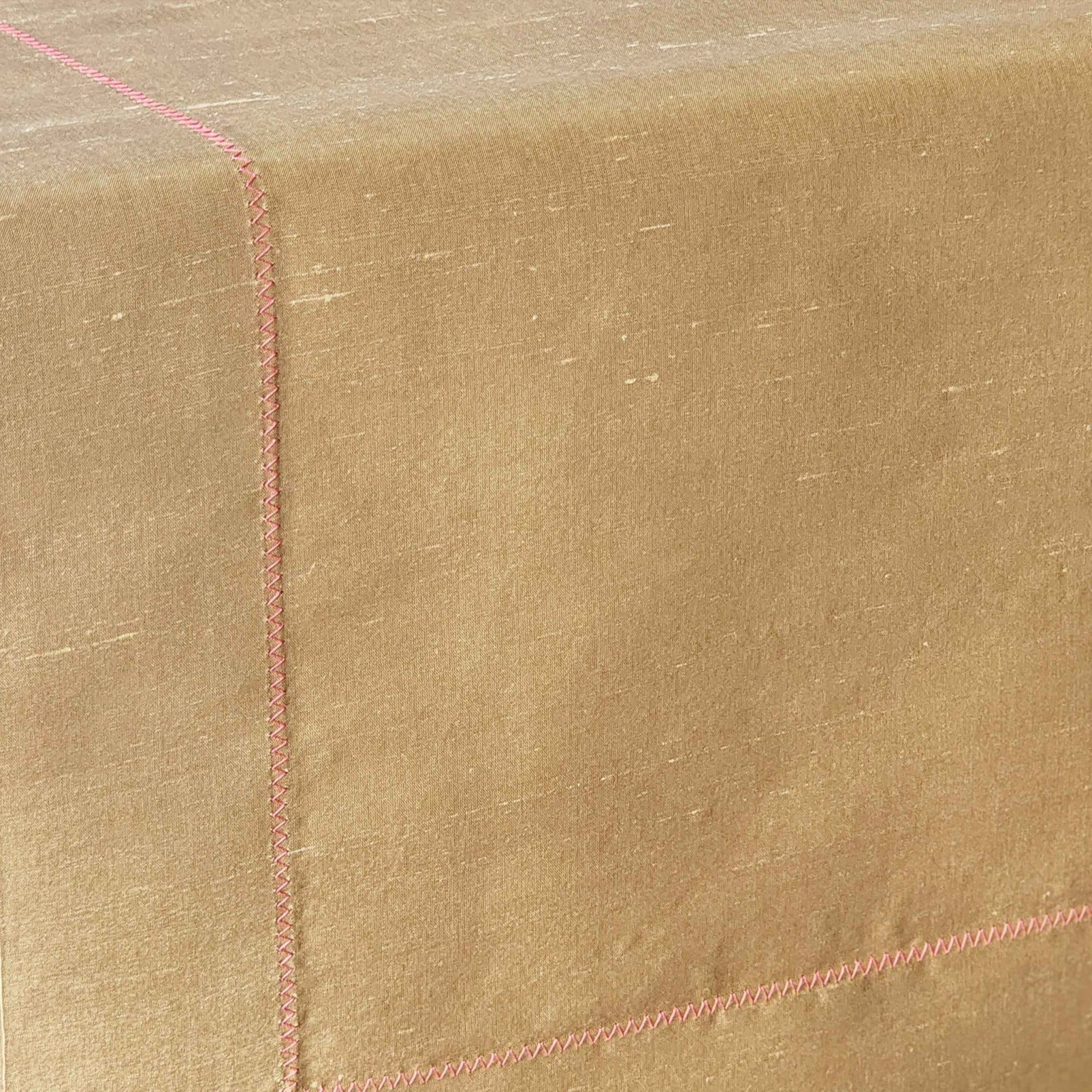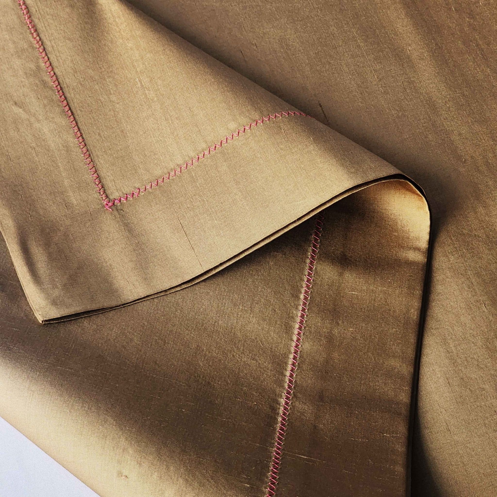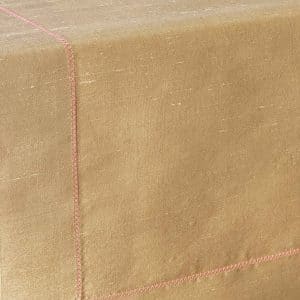 Zarafet ve yumuşak renklerin uyumunu sofralara taşıyan Alesta Home RNR022 runner, altın rengi ipek kumaşı ve pembe zigzag dikiş detayıyla şıklığı sade bir şekilde yorumluyor. Işıltılı ipek dokusu ve ince işçiliğiyle öne çıkan bu özel tasarım, hem romantik hem de modern masa düzenlerine sofistike bir dokunuş katar.