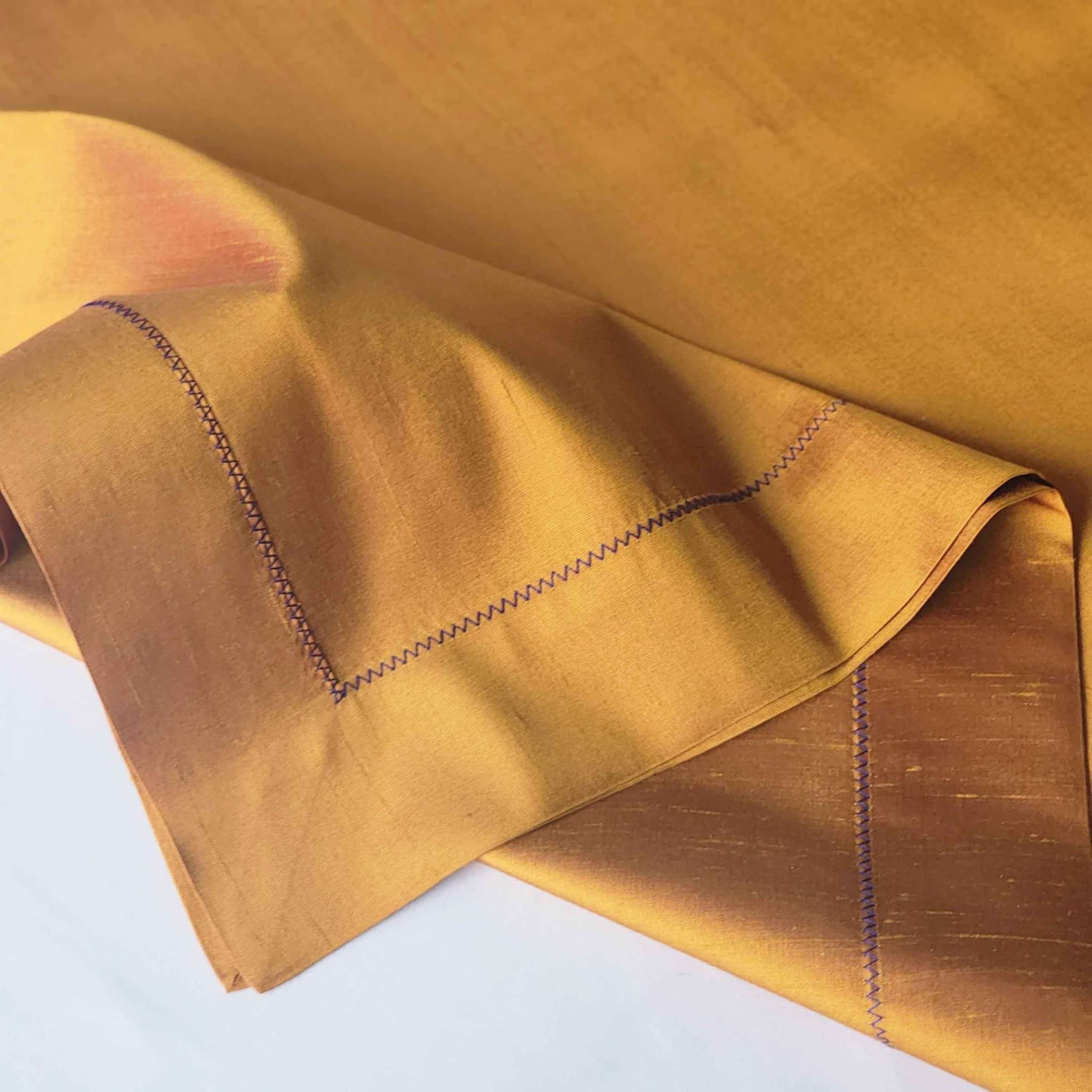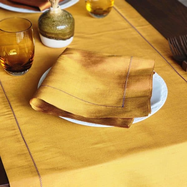 Klasik tonların güçlü kontrastlarla buluştuğu Alesta Home RNR023 runner, kiremit rengi ipeğin sıcak ve doğal dokusunu mor zigzag dikiş detayıyla tamamlıyor. %100 ipek kumaşın zarif ışıltısı, bu runner’ı hem gündelik şıklık hem de özel davetler için ideal bir seçim haline getiriyor. Cesur ama dengeli rengiyle masa dekorasyonuna karakter kazandırır.